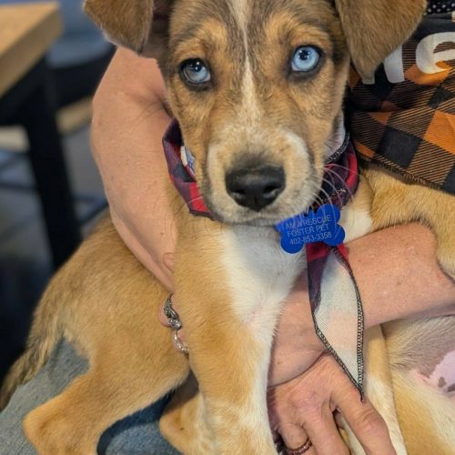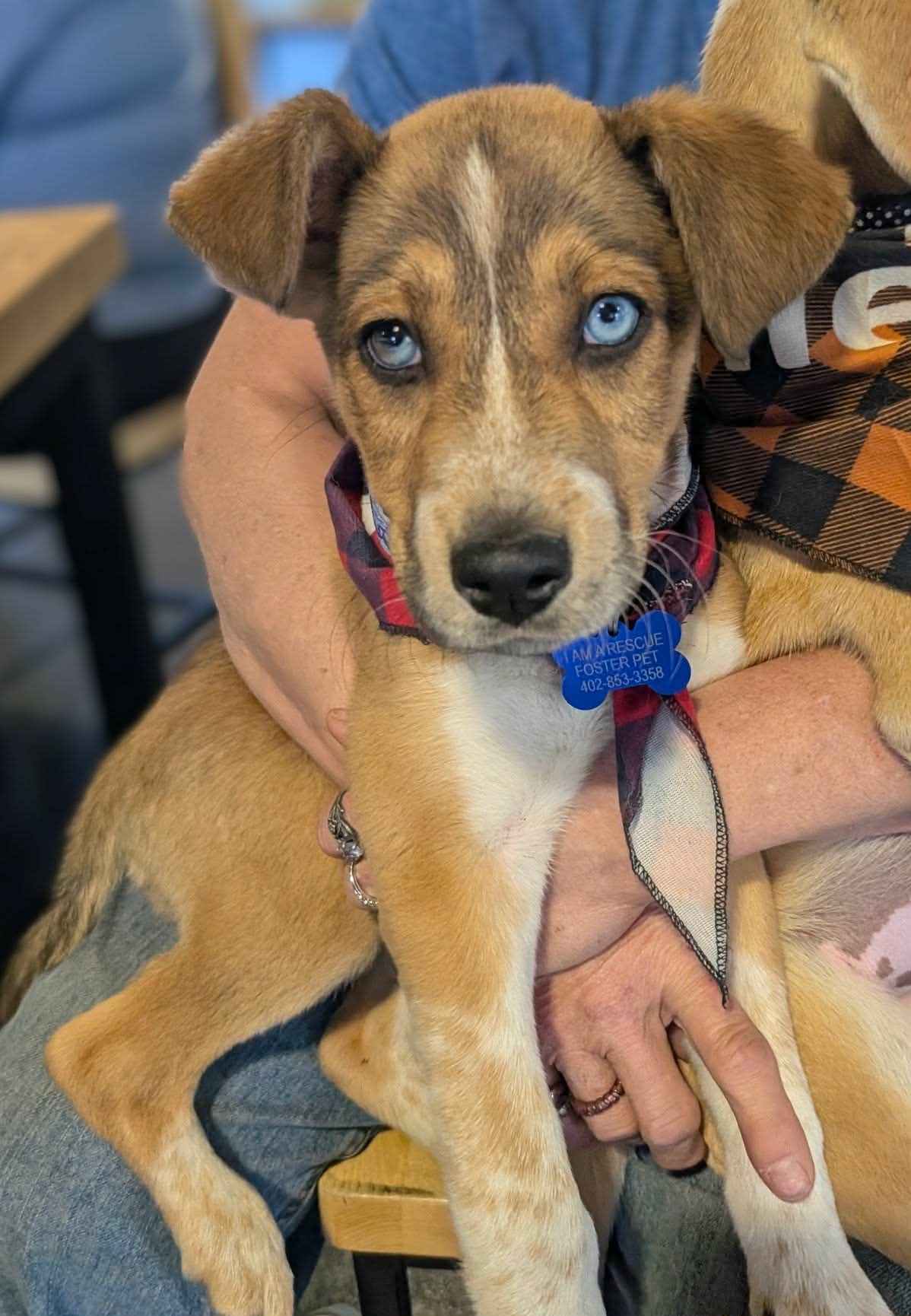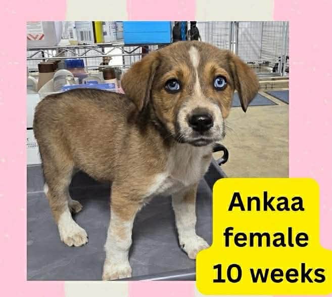 Ankaa is a female Husky/Retriever/mix (our best guess of breeds) who was was born approximately 1-20-26. She is spayed, age-appropriate vaccinated, microchipped, dewormed, given flea/tick/heartworm preventative. Adoption fee is $575 to help offset the many expenses we have for vetting costs. We rely strictly on adoption fees and donations to continue to save the lives of orphaned & abandoned pets; 100% goes towards their care.