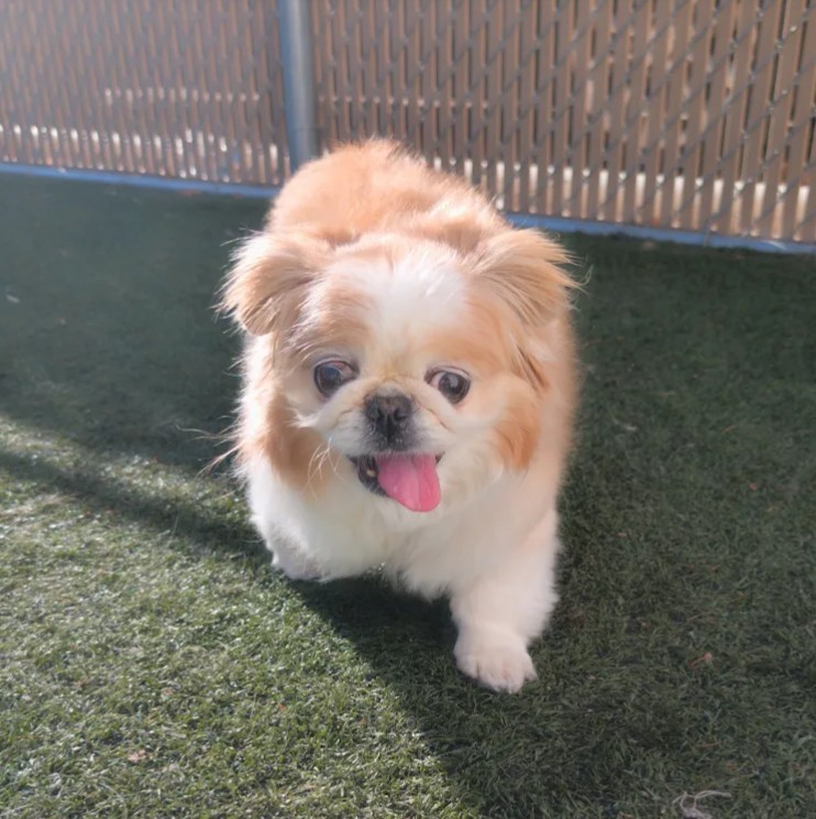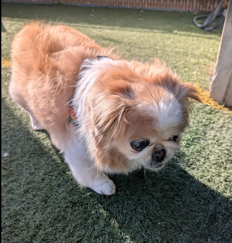 Bella is a gentle, shy Pekingese who wants nothing more than a soft lap and someone to love her back. She walks beautifully on a leash with a little encouragement, and while she hasn’t quite mastered stairs yet, she’s learning to use a ramp and doing her best! Indoors, she’s a perfect lady with no accidents and excellent manners. Bella thinks cats are simply background décor — no chasing, no drama. With most of her teeth missing, she’ll need soft or moistened food, and an adopter who understands senior dog needs would be ideal. But the moment you reach out with a hug or a gentle hand, she melts into pure affection — like the first night in her foster home, when she couldn’t settle until she received a forehead kiss and then slept peacefully for hours. Bella doesn’t ask loudly for attention… but oh, does she blossom when she gets it. She loves running in her foster family’s grass like she’s young again and would love a yard of her own. Bella is ready to be someone’s heart dog — quiet, devoted, and endlessly snuggly.