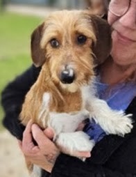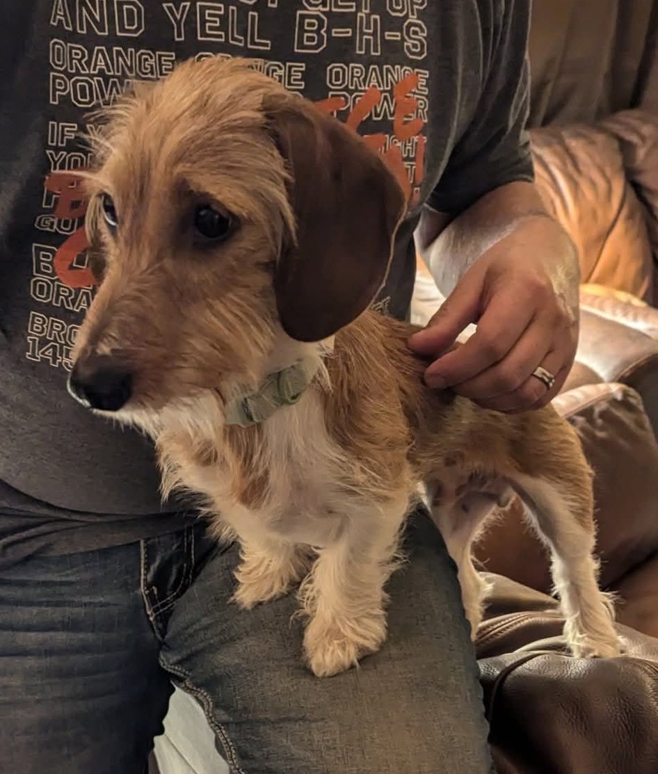 Bodie is a male neutered Wire-Haired Dachshund. DOB 2-22-25. 13 lbs, HW neg. Adoption fee $550.