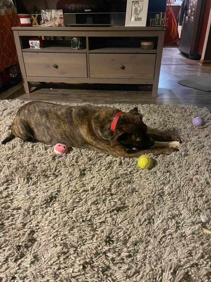 Bonnie is a female Plott Hound/Mountain Cur mix (our best guess of breeds) who was was born approximately 8-22-20. She is spayed, vaccinated, microchipped, given flea/tick preventative, dewormed, provided life-saving heartworm treatment, and will need to be kept on heartworm prevention. Adoption fee is $300 to help offset the many expenses we have for vetting costs. We rely strictly on adoption fees and donations to continue to save the lives of orphaned & abandoned pets; 100% goes towards their care.