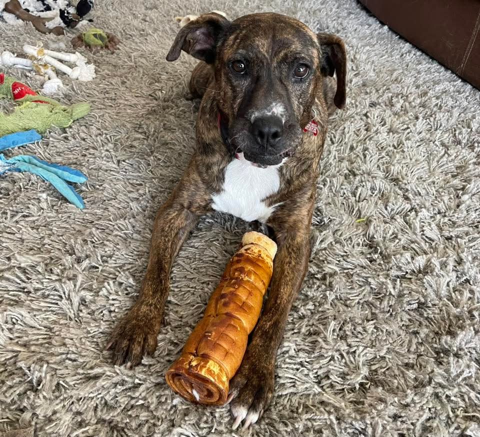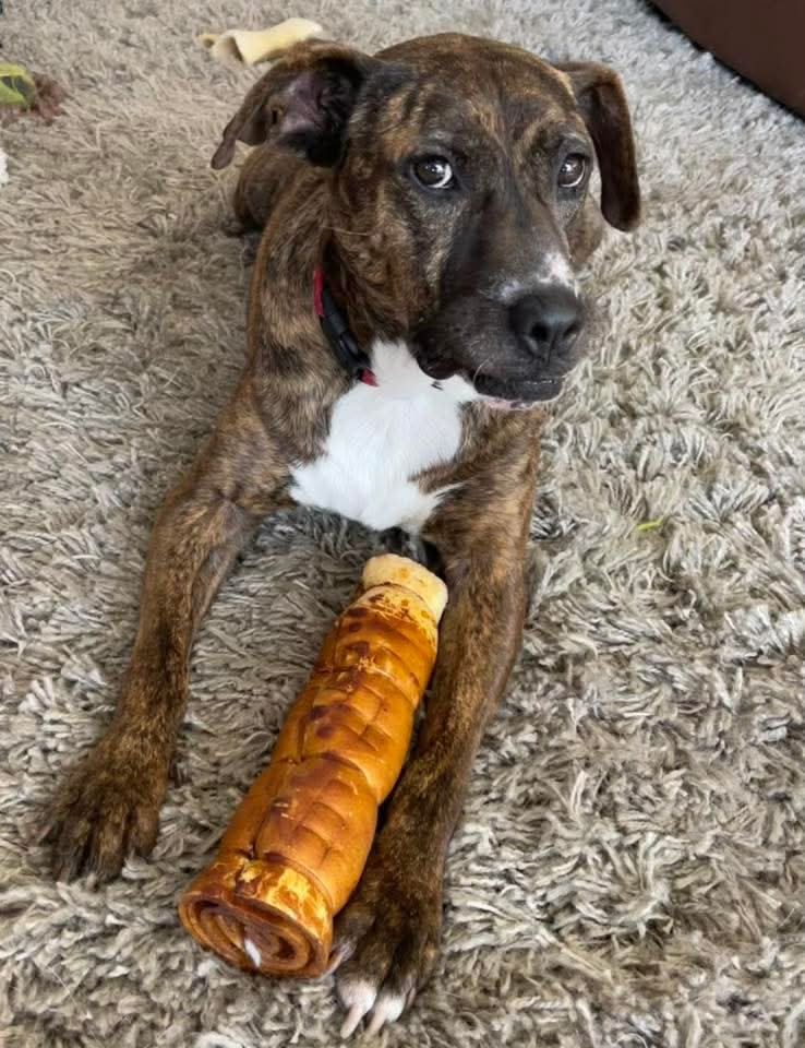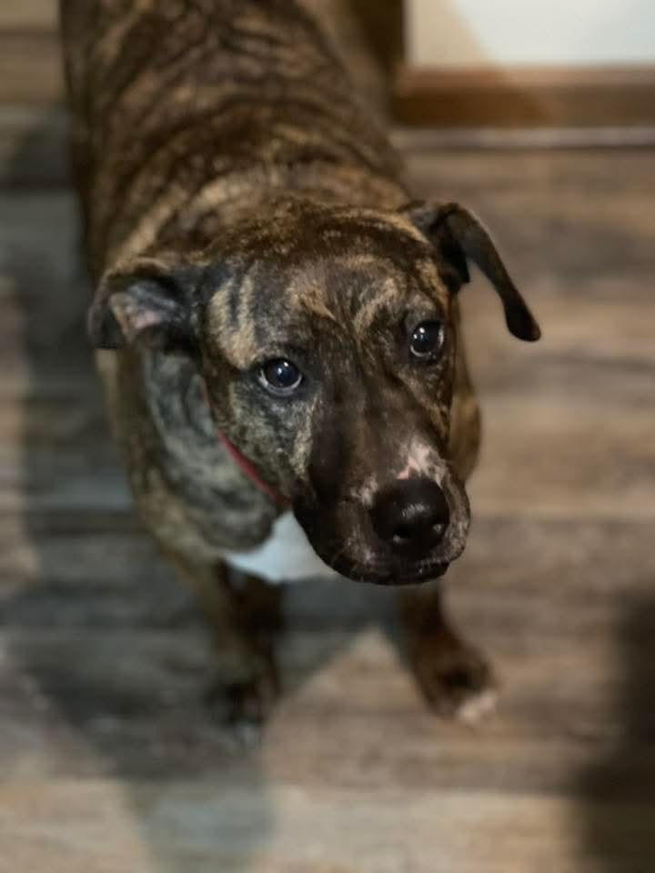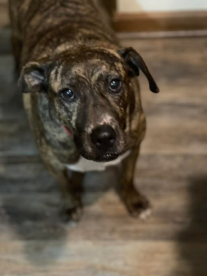 Bonnie is a female Plott Hound/Mountain Cur mix (our best guess of breeds) who was was born approximately 8-22-20 and weighs 52 lbs. She is spayed, vaccinated, microchipped, given flea/tick preventative, dewormed, provided life-saving heartworm treatment, and will need to be kept on heartworm prevention. Adoption fee is $300 to help offset the many expenses we have for vetting costs. We rely strictly on adoption fees and donations to continue to save the lives of orphaned & abandoned pets; 100% goes towards their care.