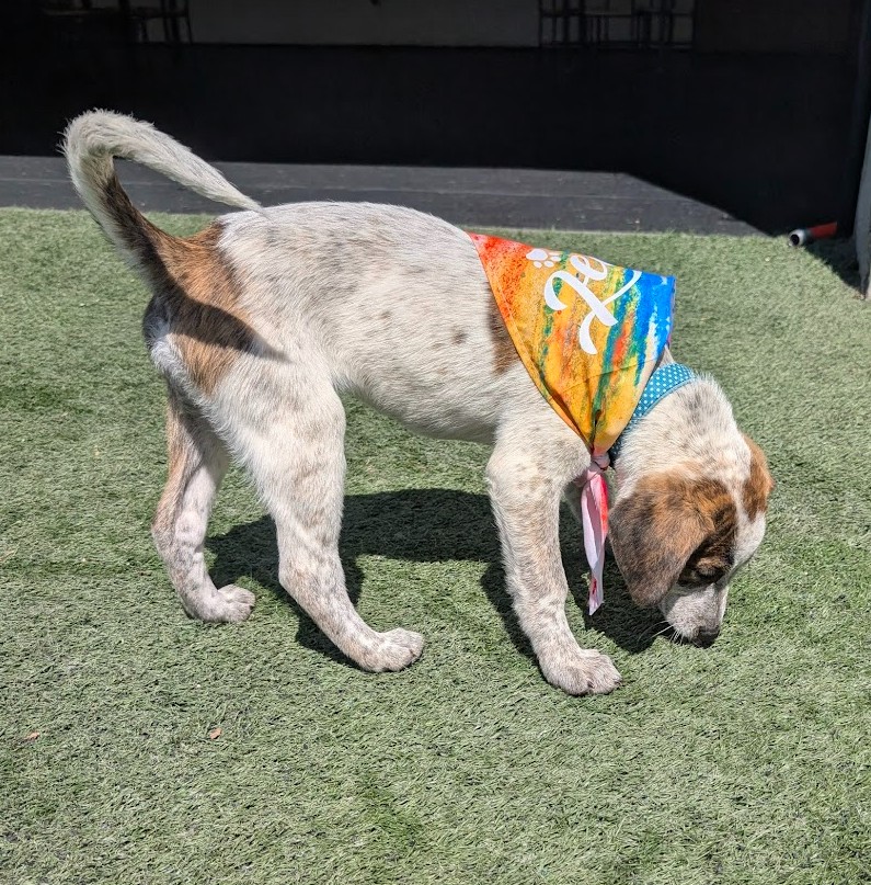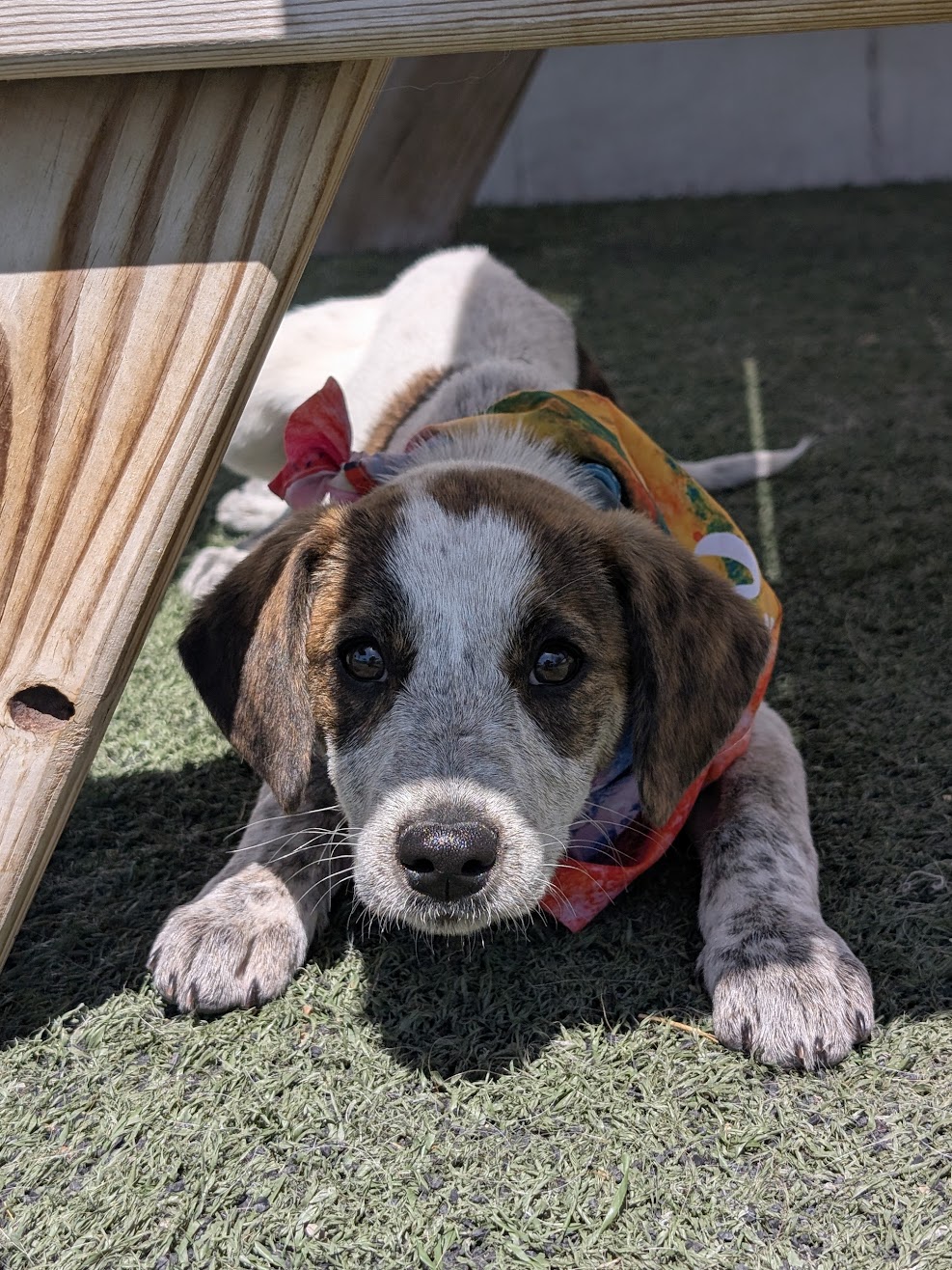 Carey is a female Beagle/Mountain Cur/mix who was was born approximately 1-23-26. She is spayed, age-appropriate vaccinated, microchipped, dewormed, given flea/tick/heartworm preventative. Adoption fee is $575 to help offset the many expenses we have for vetting costs. We rely strictly on adoption fees and donations to continue to save the lives of orphaned & abandoned pets; 100% goes towards their care.