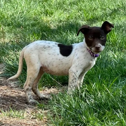 Daisy is a female English Pointer/All-American Rescue mix (our best guess of breed) who was was born approximately 2-6-26. She is spayed, age-appropriate vaccinated, microchipped, dewormed, given flea/tick/heartworm preventative. Adoption fee is $575 to help offset the many expenses we have for vetting costs. We rely strictly on adoption fees and donations to continue to save the lives of orphaned & abandoned pets; 100% goes towards their care.