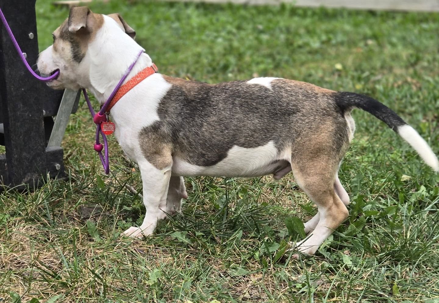 Donnor is a long, low, and lovable terrier mix who’s ready to wiggle his way into your heart. With an active and playful personality, he adores human attention, enjoys the company of dogs of all sizes, and is always curious about the world around him. Once neglected, Donnor is making up for lost time by exploring everything, tugging on toys, and even tugging at your heartstrings with his goofy charm. He walks well on a leash, is mostly housetrained, and while he’s best suited for families with children over 10, he’s eager to find a forever home filled with love, play, and plenty of cuddles.