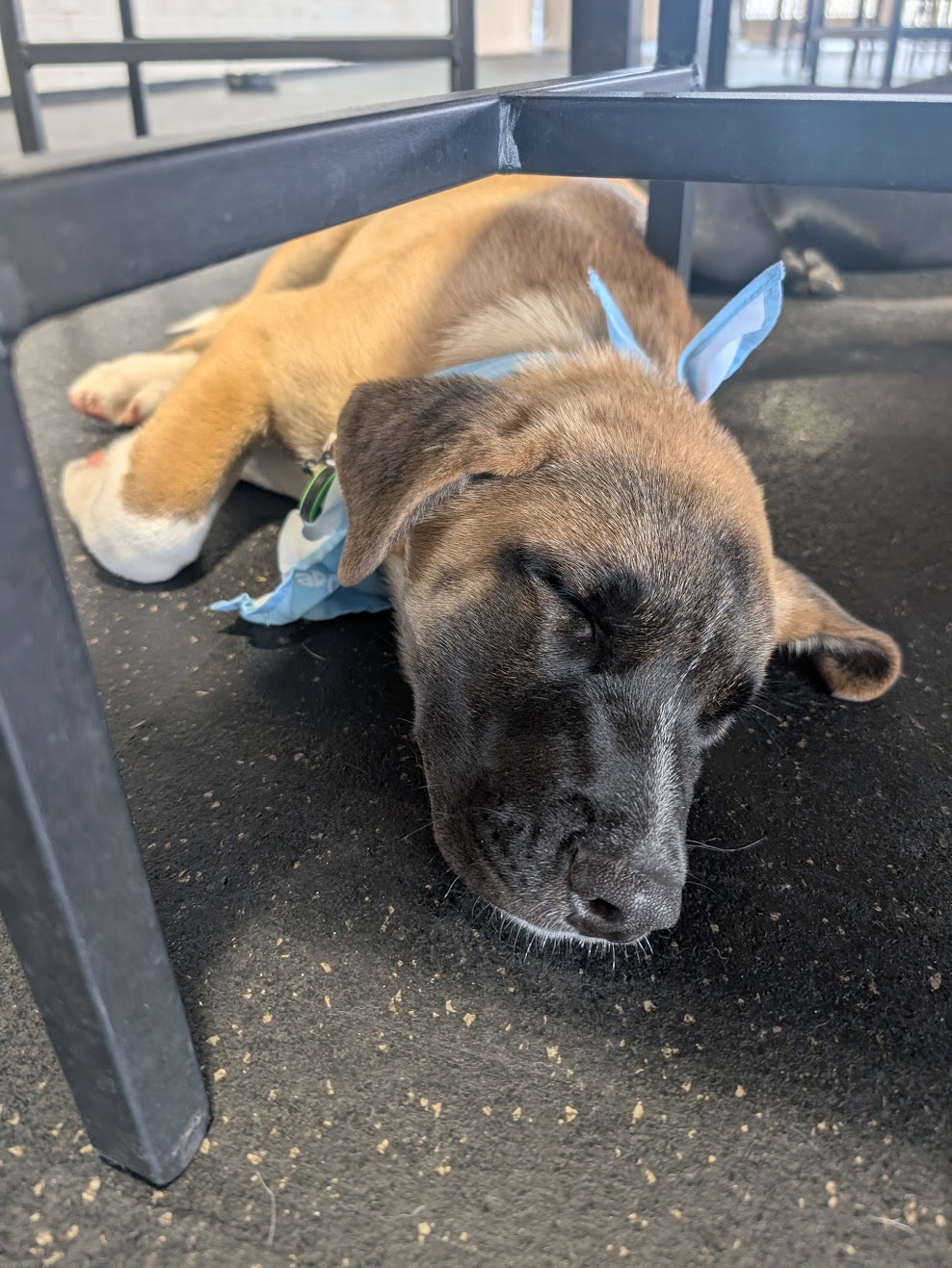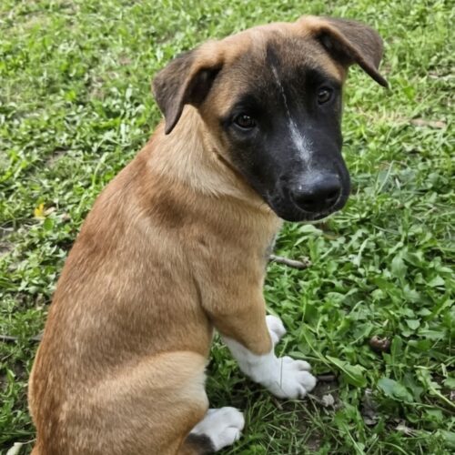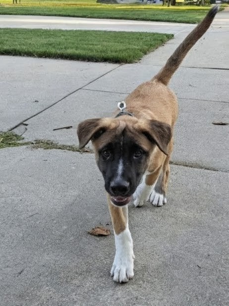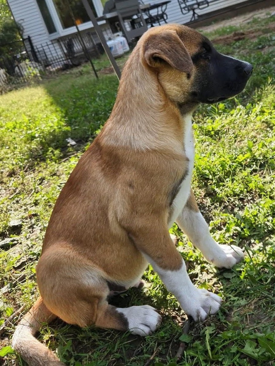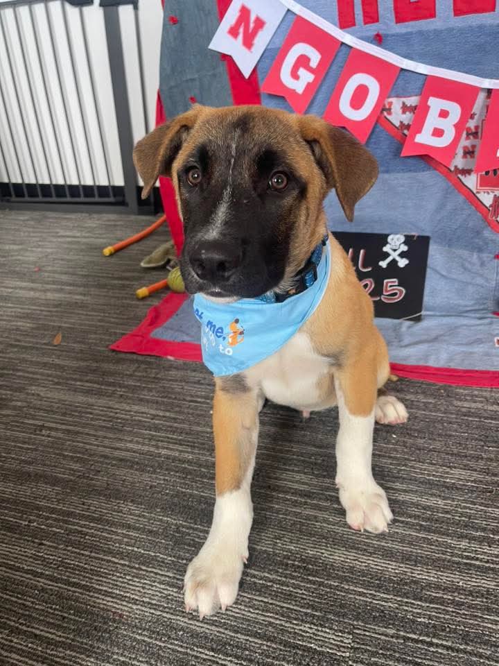 Duke is a playful and intelligent puppy who’s quickly winning hearts with his sweet personality. He happily soaks up belly rubs and kisses after pretending to initially be bashful. He’s doing well with his housetraining, learning commands quickly, and already walks nicely on a leash, enjoying calm strolls through the neighborhood. Duke adores other dogs of all sizes and has shown gentle curiosity toward kids he’s met on walks. He will need a home where he will get to go on lots of adventures including daily exercise such as walks, dog parks, and outside romp time. Apartment life would not suit him. With his long tail, big heart, and eager-to-learn spirit, Duke is ready to bring joy, loyalty, and plenty of puppy love to his forever family.