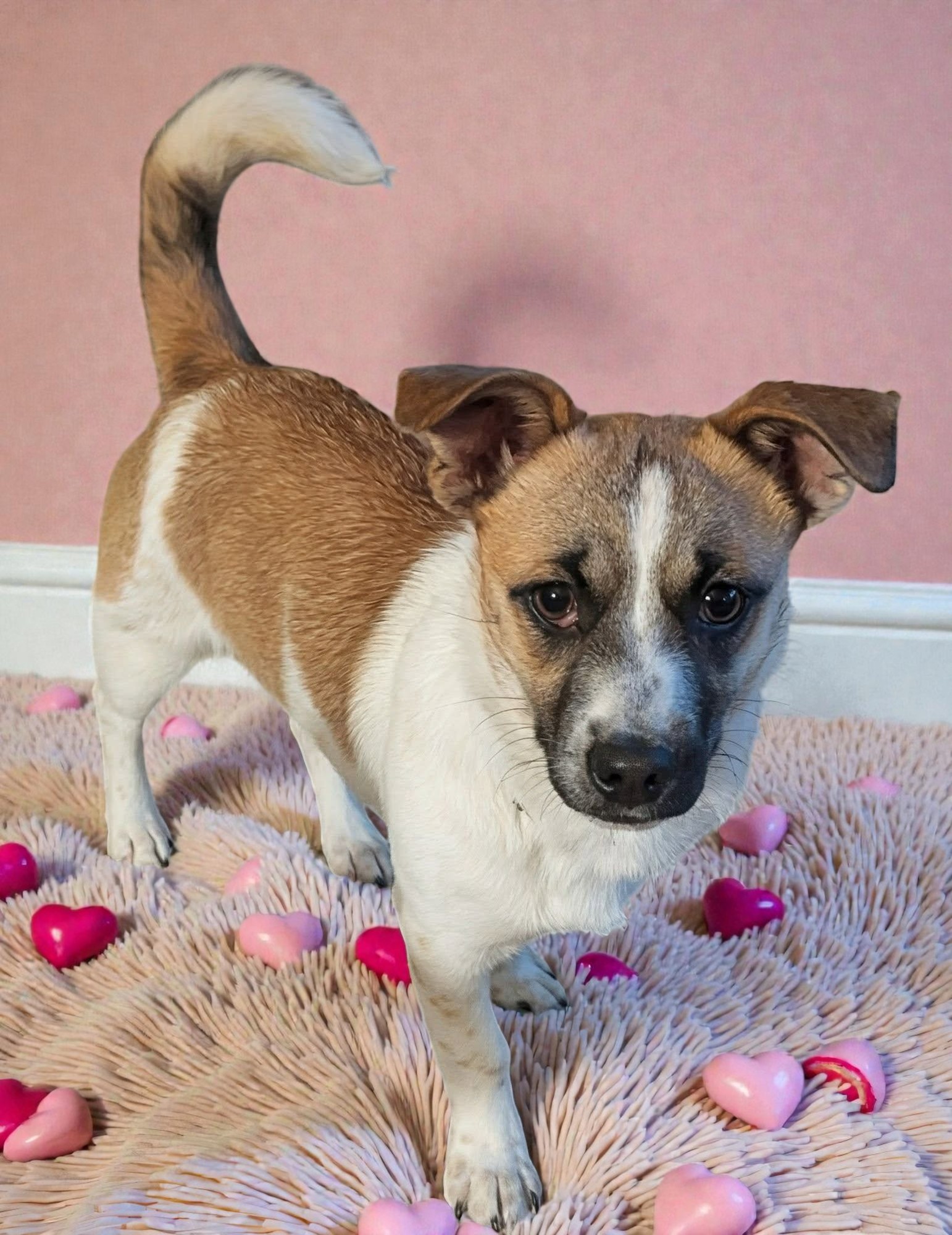 Faye is a female Corgi/mix pup who was was born approximately 7-11-25. She is spayed, vaccinated, microchipped, given flea/tick preventative, dewormed, tested heartworm negative and started on heartworm prevention. Adoption fee is $600 to help offset the many expenses we have for vetting costs. We rely strictly on adoption fees and donations to continue to save the lives of orphaned & abandoned pets; 100% goes towards their care.