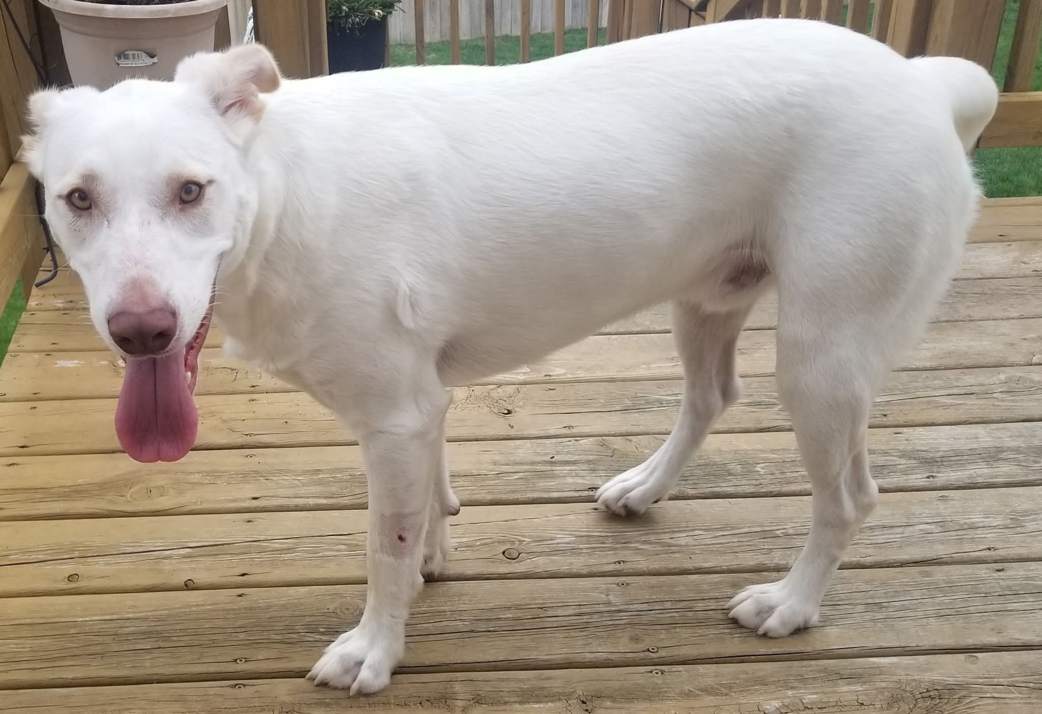 Foggy is a Retriever/Husky mix (our best guess of breeds) who was was born approximately 7-24-24. He is neutered, vaccinated, microchipped, given flea/tick preventative, dewormed, tested heartworm negative and started on heartworm prevention. He may have had some trauma to his right eye which caused slight scarring of his cornea, but you'd never know it, it for sure doesn't slow him down. Adoption fee is $400 to help offset the many expenses we have for vetting costs. We rely strictly on adoption fees and donations to continue to save the lives of orphaned & abandoned pets; 100% goes towards their care.