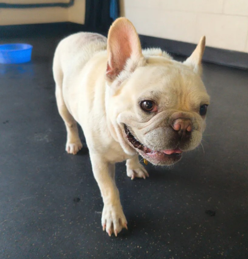 Hero is a charming, snorty little couch potato who fully believes comfort is a personality trait. He’s incredibly smart and wonderfully well-mannered—he’ll go potty on command, settle into his bed when asked, and even give a heart-melting wave when he wants to say hello. Hero is gentle and friendly with other dogs, and while he hasn’t officially met kids or cats with his foster, his laid-back nature suggests he’d likely do just fine with either. He’s completely potty trained (even when he wasn’t feeling his best!) and sleeps independently, though he’d happily upgrade to full-time snuggler status. Hero does have some skin sensitivities and an eye ulcer currently being treated, so he’ll need an adopter familiar with bulldog care who can continue supporting his health. With his adorable piggy snorts, easygoing nature, and professional-level cuddling skills, Hero is ready to bring love, laughs, and lots of lazy-day joy to his forever home.