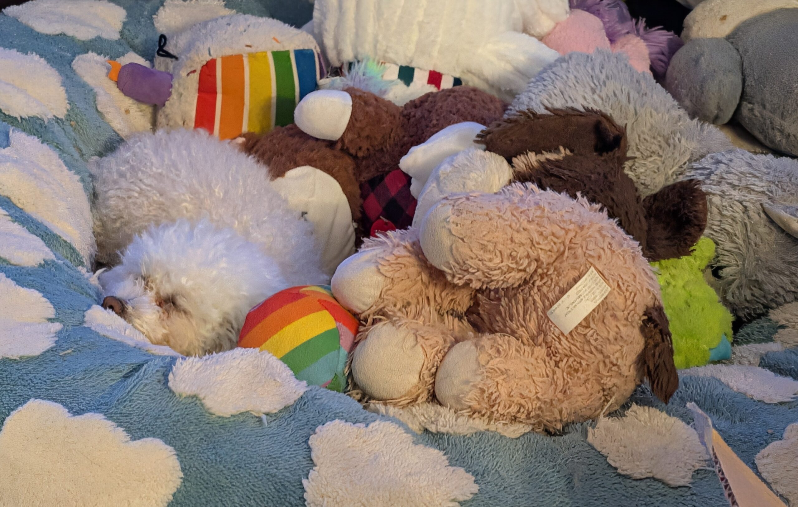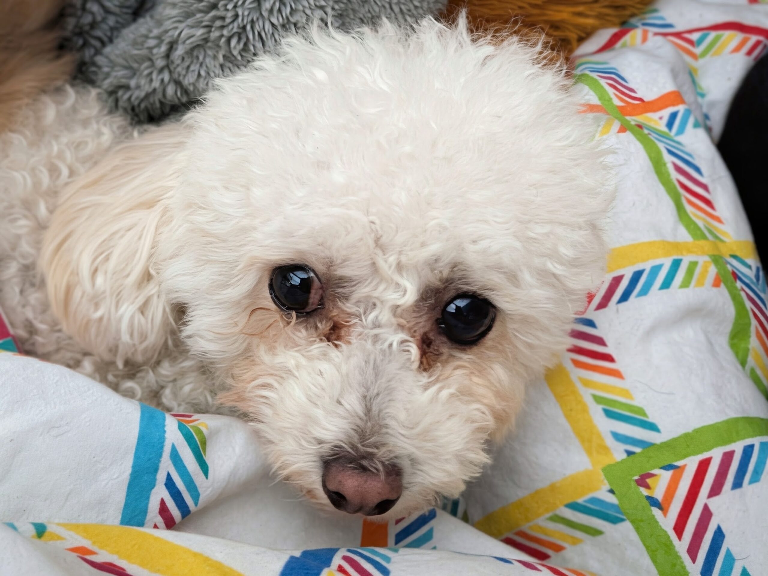 Peaches is a delicate little lamb of a dog who wants nothing more than to feel safe, included, and loved. She came from a past where people weren’t kind, and now big changes still scare her. She must always see what’s happening around her and prefers having her back tucked against something so no one can surprise her or sitting on a lap with. With patience, she will quietly approach for gentle affection and melt into you like she has been waiting her whole life for that moment. Peaches needs a calm, adult-only home with someone who understands fearful dogs and will celebrate each tiny step forward. She is mostly housebroken, has a soft, long tail that wags gently when she’s feeling brave, and would enjoy a secure fenced yard for stress-free exploring. Peaches is small, sweet, and incredibly resilient — she just needs the right person to help her heart bloom.