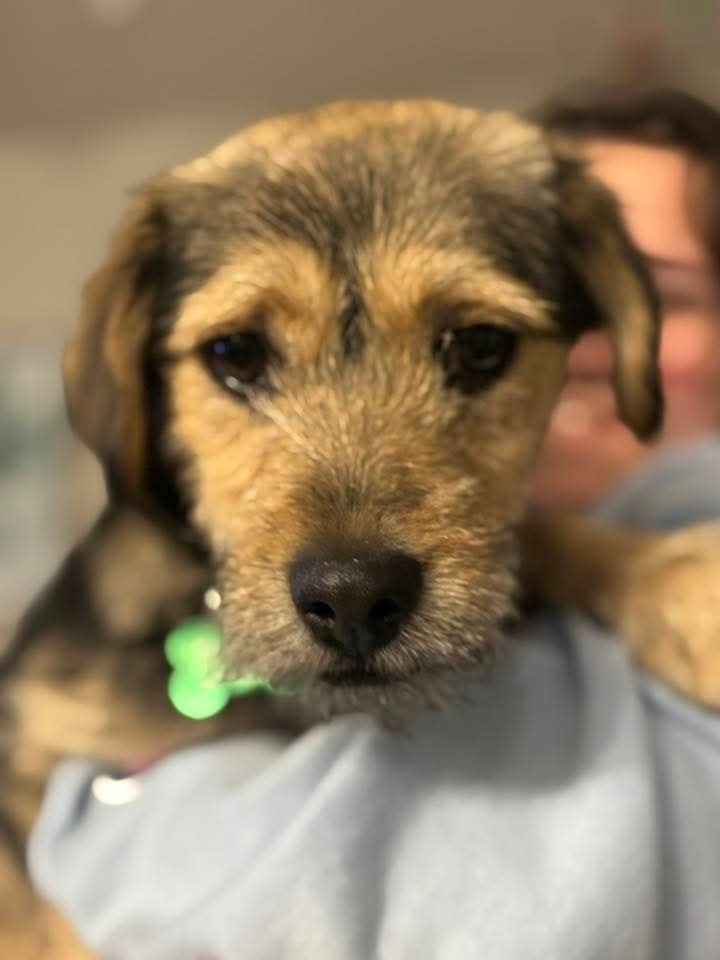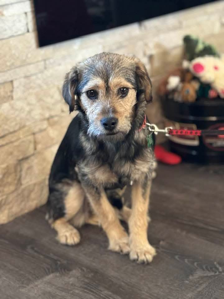 Pearl is a Border Terrier/mix who was was born approximately 12-26-24. She is spayed, vaccinated, microchipped, given flea/tick preventative, dewormed, tested heartworm negative and started on heartworm prevention. Adoption fee is $450 to help offset the many expenses we have for vetting costs. We rely strictly on adoption fees and donations to continue to save the lives of orphaned & abandoned pets; 100% goes towards their care.