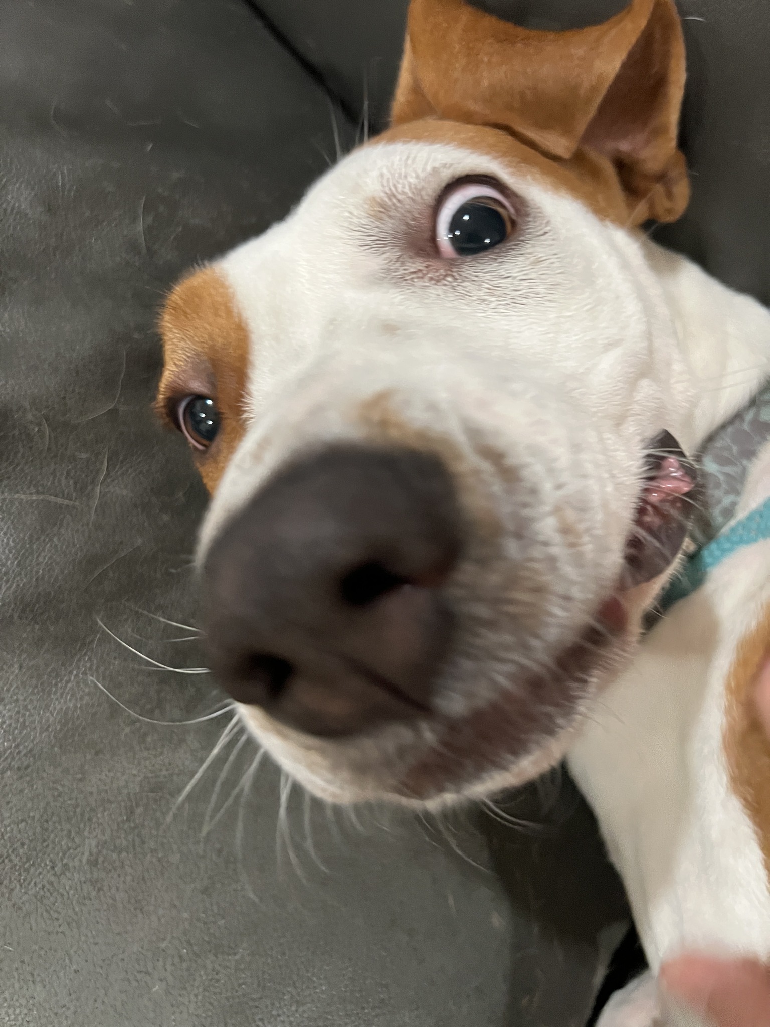 Rosie is the perfect mix of love, loyalty, and spunk, with a big personality that shines through in everything she does. She’s expressive and affectionate—nudging for attention, curling up beside you on the couch, or even squeezing between your legs for a stand-up snuggle-hug—and she’ll “talk” like Scooby-Doo when she has something on her mind. Smart and eager to please, Rosie learned “sit” right away and is very trainable with food or affection. She’s completely housetrained, can hold her bladder all day, and does well left loose in the home. Rosie enjoys walks and dog-park play, but she likes to be in charge and can resource guard food, water, or toys, so she’ll thrive with an experienced owner who can set clear boundaries. She’ll do best in a cat-free home and with children over 10, since she’s protective of her family and can get mouthy when she plays. Rosie is also a vocal girl—she’ll bark to alert you of visitors and keen for a few minutes when left alone—so she needs a home where her voice won’t be a problem, though her big bark makes her a reassuring walking companion. She is finishing up heartworm treatment and will soon be ready to shower her forever family with devotion, fun, and the warm, wiggly love she brings to everyone she meets.