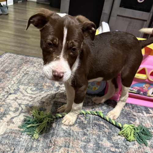 Sid is a male English Pointer/All-American Rescue mix (our best guess of breed) who was was born approximately 2-6-26. He is neutered, age-appropriate vaccinated, microchipped, dewormed, given flea/tick/heartworm preventative. Adoption fee is $575 to help offset the many expenses we have for vetting costs. We rely strictly on adoption fees and donations to continue to save the lives of orphaned & abandoned pets; 100% goes towards their care.