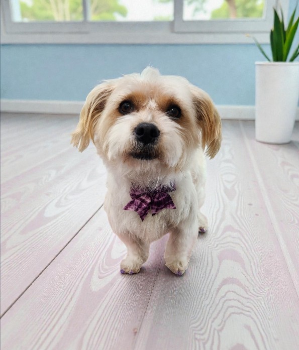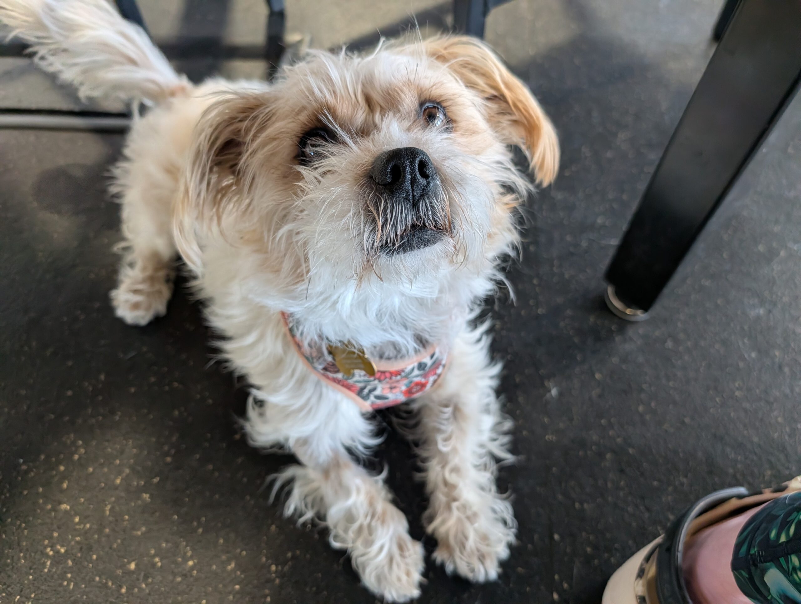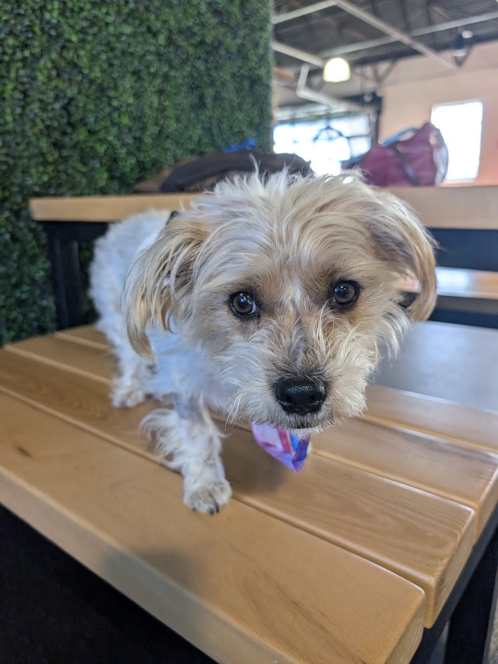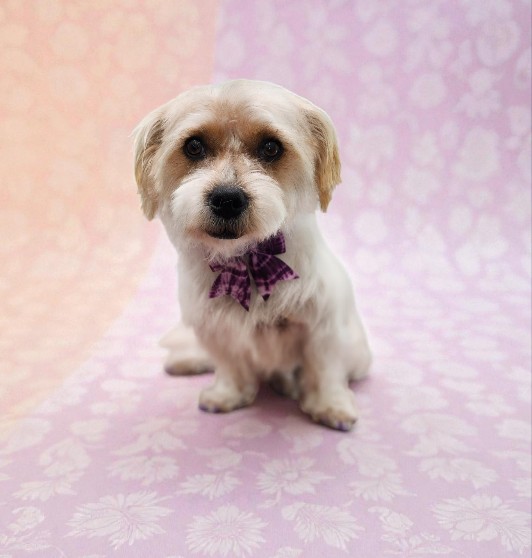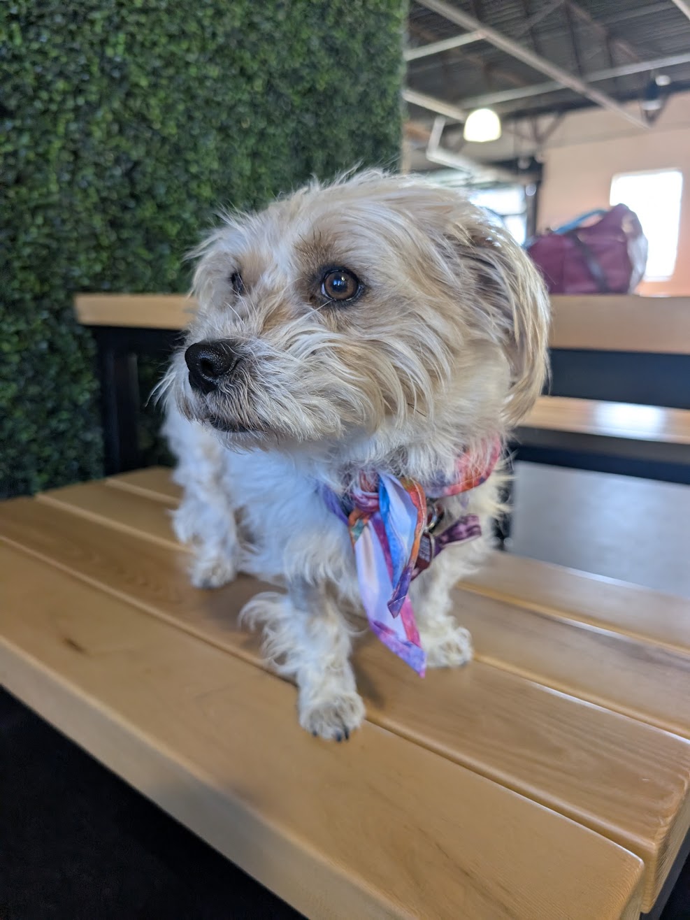 Snowy (also known as “Betty White,” thanks to her all-natural glamorous bottle-blonde coat and those adorable darker roots) is a playful, inquisitive 2-year-old Havanese/Shih Tzu/West Highland terrier mix who’s ready to be your best little sidekick. She’s the kind of dog who doesn’t need to be glued to your lap 24/7—but she absolutely wants to be nearby, keeping you company like a loyal friend, confidant, and tiny roommate who always knows what you’re up to. She is much smaller than her photos reflect. True to her nickname, Snowy gives major St. Olaf energy: sweet, charming, a little quirky, and impossible not to love. She adores other dogs and would thrive with a canine companion to wrestle, romp, and share adventures with, and she also enjoys her toys and a good play session. When she decides it’s cuddle time, she’ll happily curl up with you, but she also has a wonderful independent streak that makes her an easy, balanced companion. She will go into a crate, though she’s not especially fond of it if everyone else is free-roaming, so she’ll do best with a patient adopter who can help her feel secure. With her playful spirit, gentle affection, and Golden-Girl-level charm, Snowy is ready to find her forever home—preferably one with a dog friend and someone who appreciates a little Betty White magic.