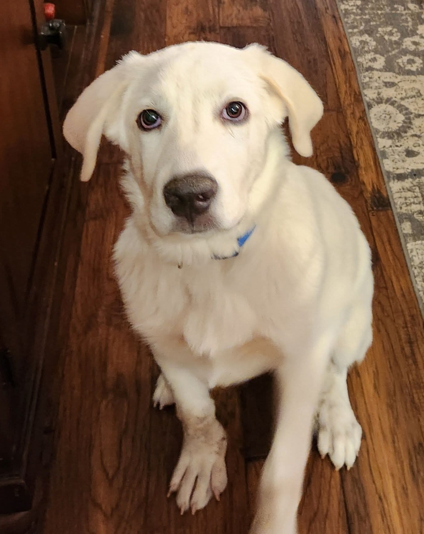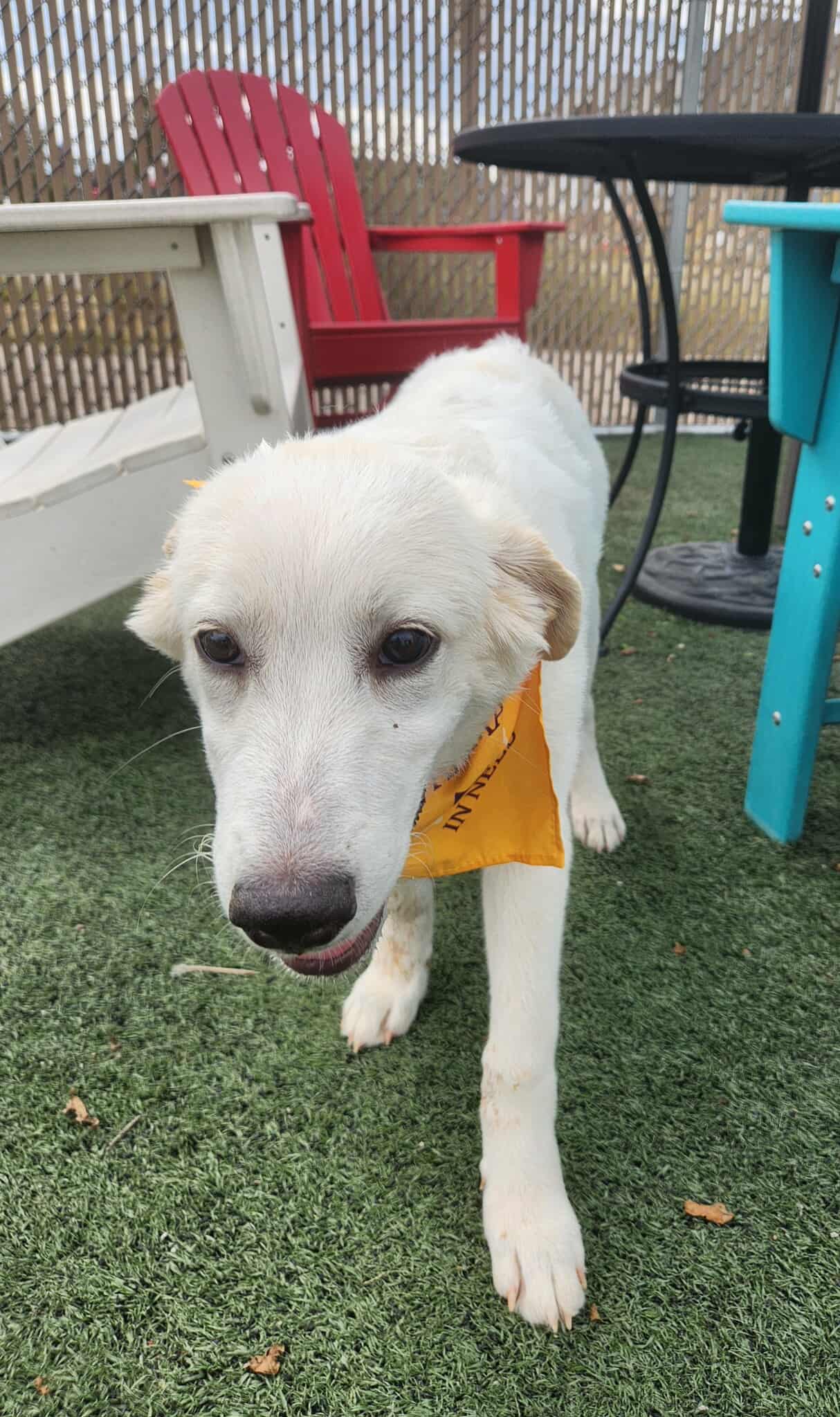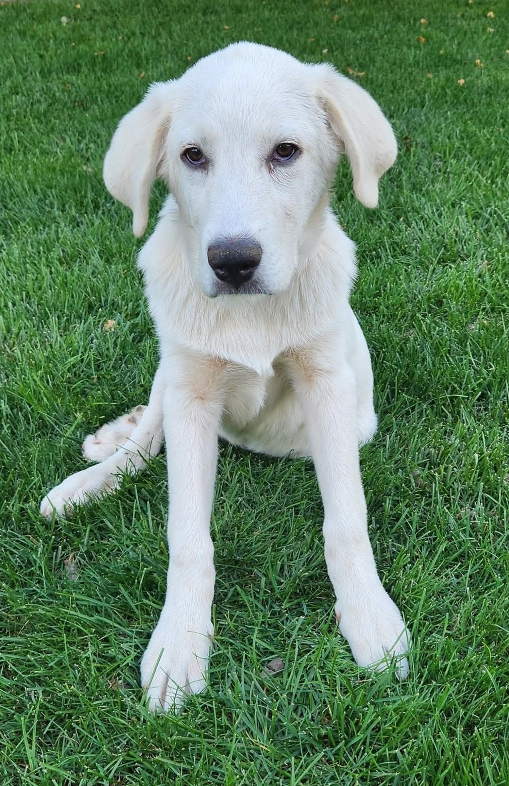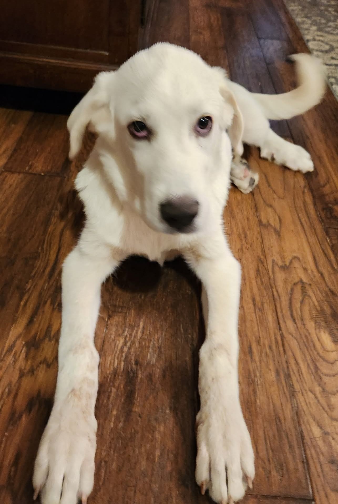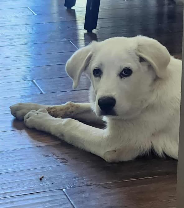 Sonic is a growing male Great Pyrenees/Lab mix puppy who was was born approximately 6-10-25. He is neutered, vaccinated, microchipped, given flea/tick preventative, dewormed, started on flea/tick/heartworm prevention. Adoption fee is $600 to help offset the many expenses we have for vetting costs. We rely strictly on adoption fees and donations to continue to save the lives of orphaned & abandoned pets; 100% goes towards their care.
