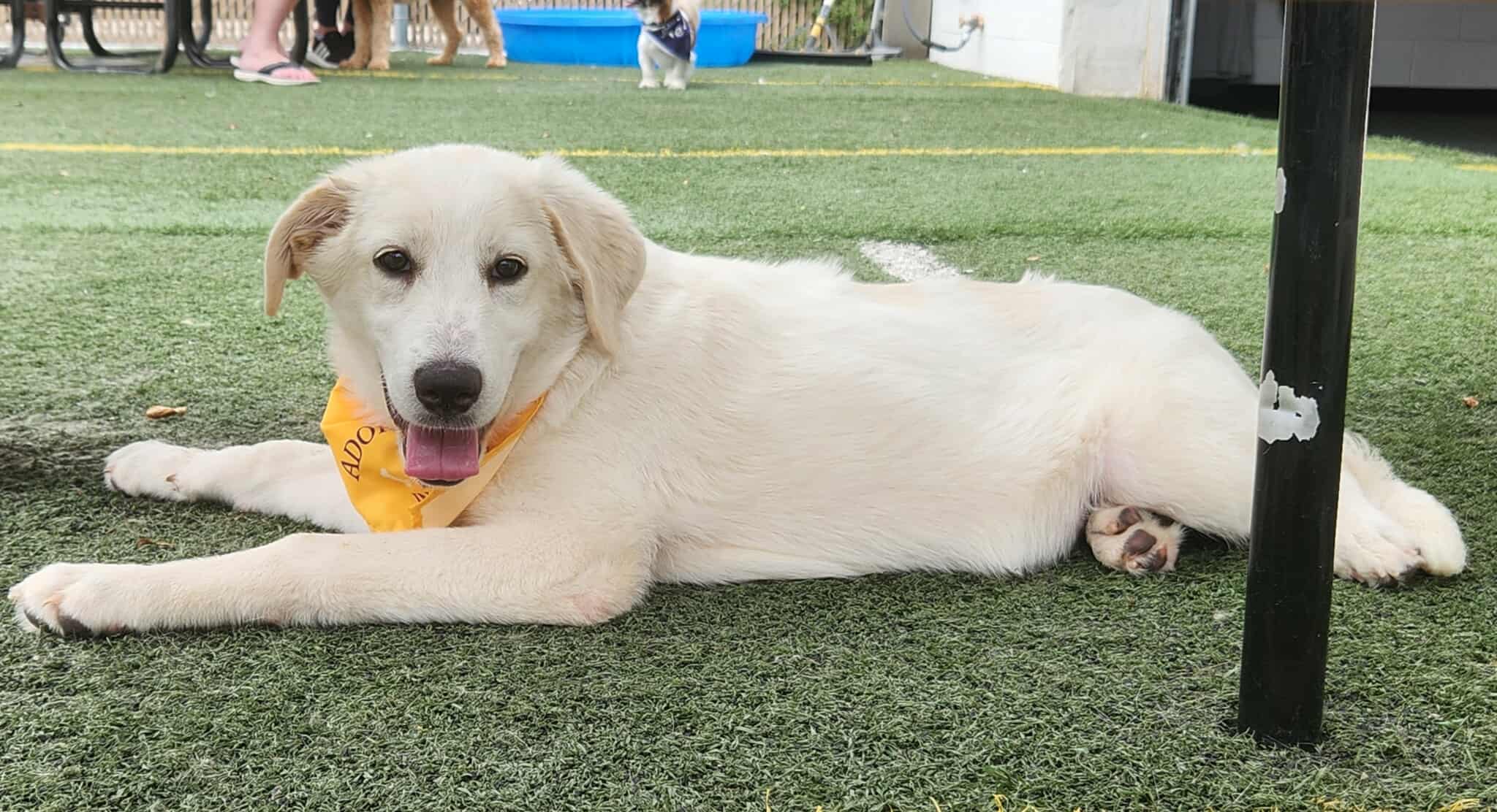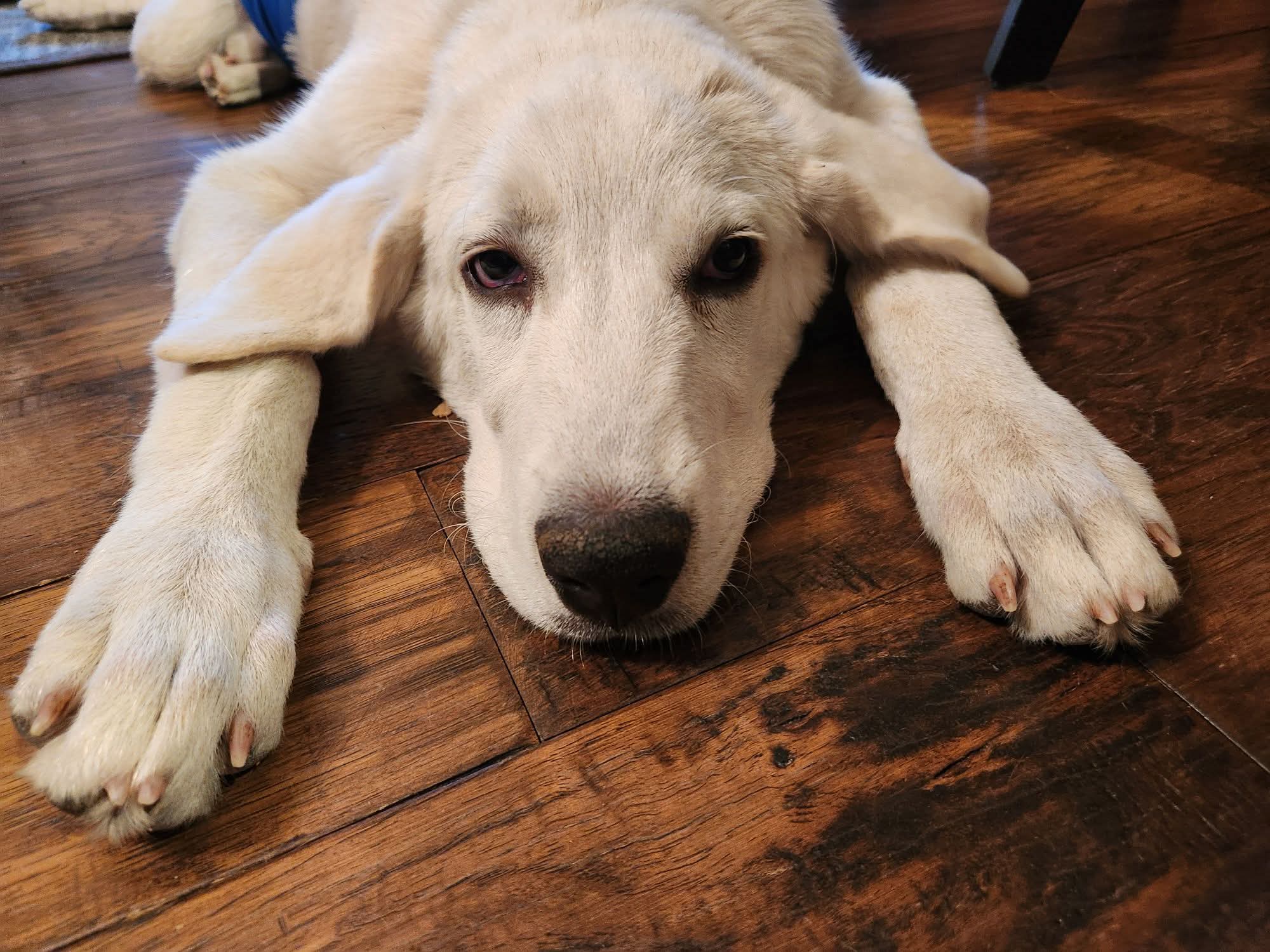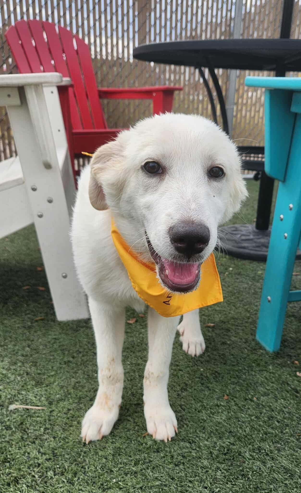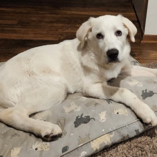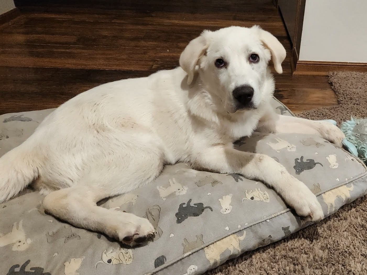 Sonic is a growing male Great Pyrenees/Lab mix puppy who was was born approximately 6-10-25. He is neutered, vaccinated, microchipped, given flea/tick preventative, dewormed, started on flea/tick/heartworm prevention. Adoption fee is $600 to help offset the many expenses we have for vetting costs. We rely strictly on adoption fees and donations to continue to save the lives of orphaned & abandoned pets; 100% goes towards their care.