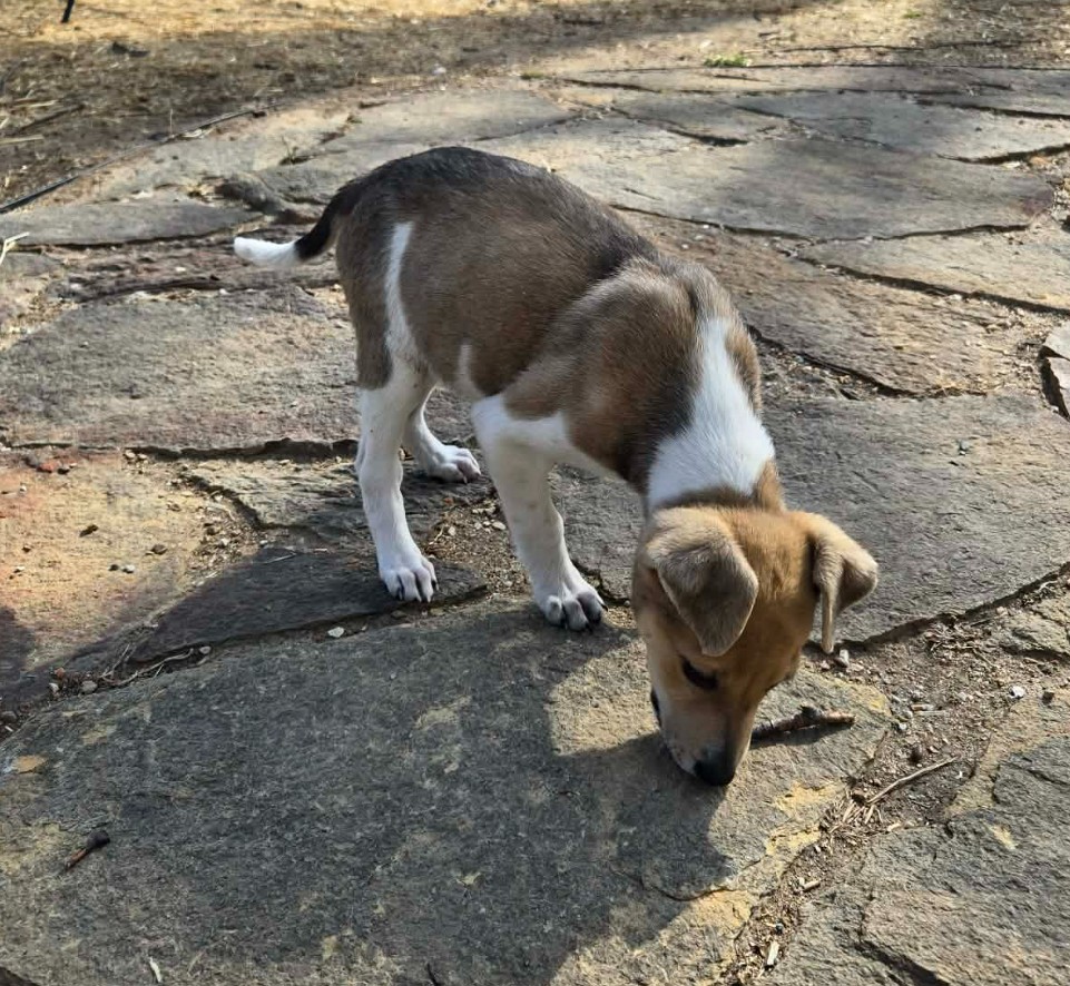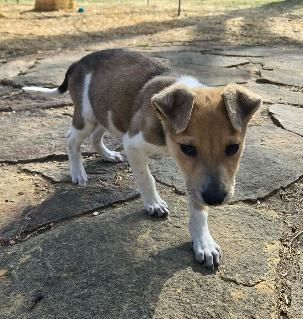Squirrel is a male All-American Rescue Dog (maybe a Collie mix?) who was was born approximately 1-14-26. He is neutered, vaccinated, microchipped, given flea/tick preventative, dewormed. Adoption fee is $575 to help offset the many expenses we have for vetting costs. We rely strictly on adoption fees and donations to continue to save the lives of orphaned & abandoned pets; 100% goes towards their care.