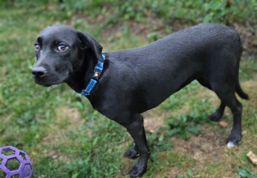 Velma is a growing female Black Retriever/mix puppy who was was born approximately 4-18-25. She is spayed, vaccinated, microchipped, given flea/tick preventative, dewormed, started on flea/tick/heartworm prevention. Adoption fee is $550 to help offset the many expenses we have for vetting costs. We rely strictly on adoption fees and donations to continue to save the lives of orphaned & abandoned pets; 100% goes towards their care.